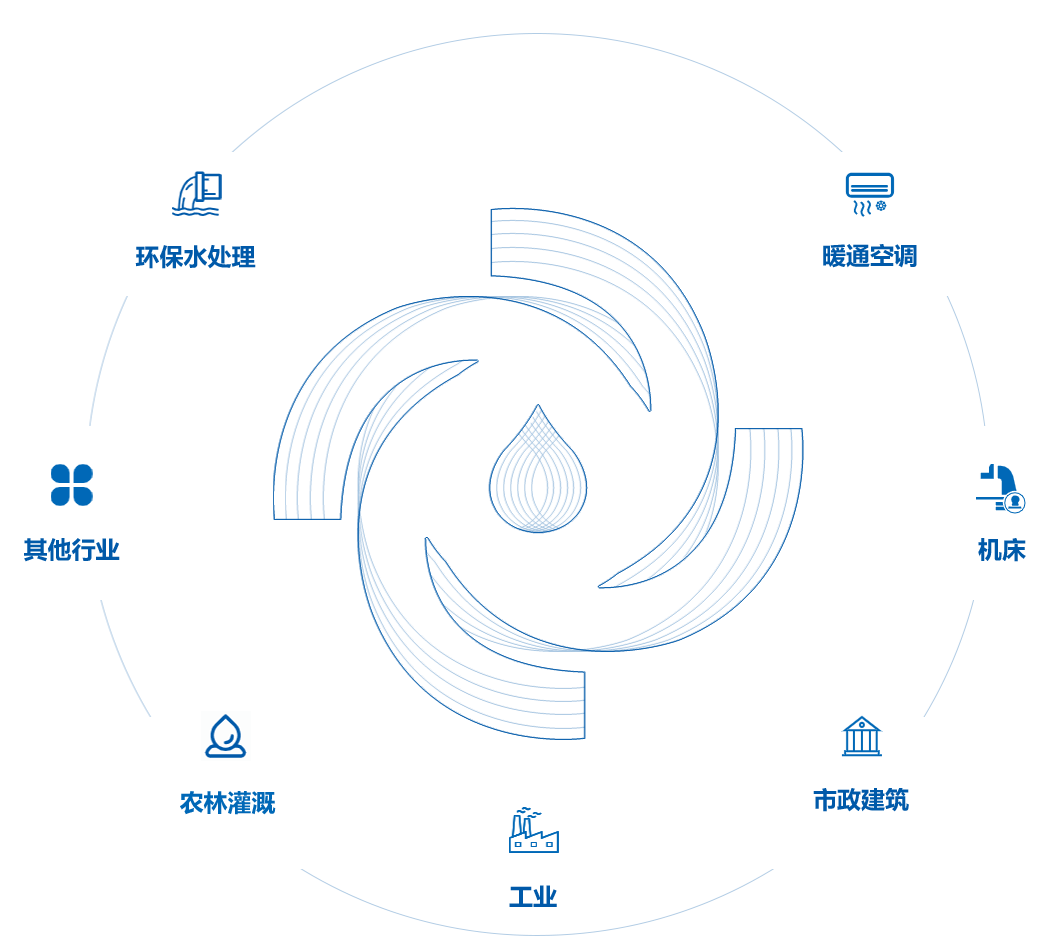 旗下系列產(chǎn)品廣泛應用于環(huán)保水處理、暖通空調(diào)、機床、市政建筑、工業(yè)、農(nóng)林灌溉等諸多領(lǐng)域。